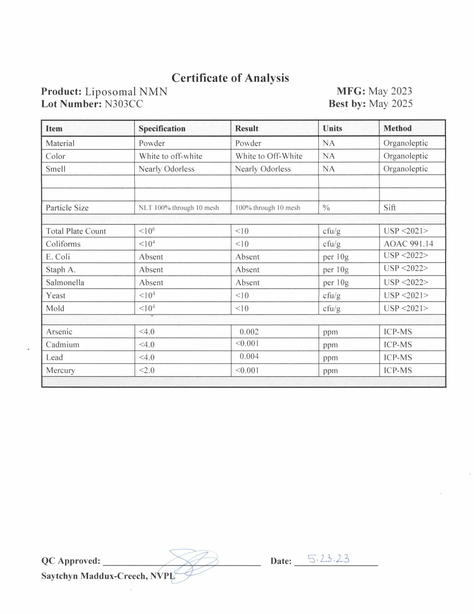 Strength and Purity Certification